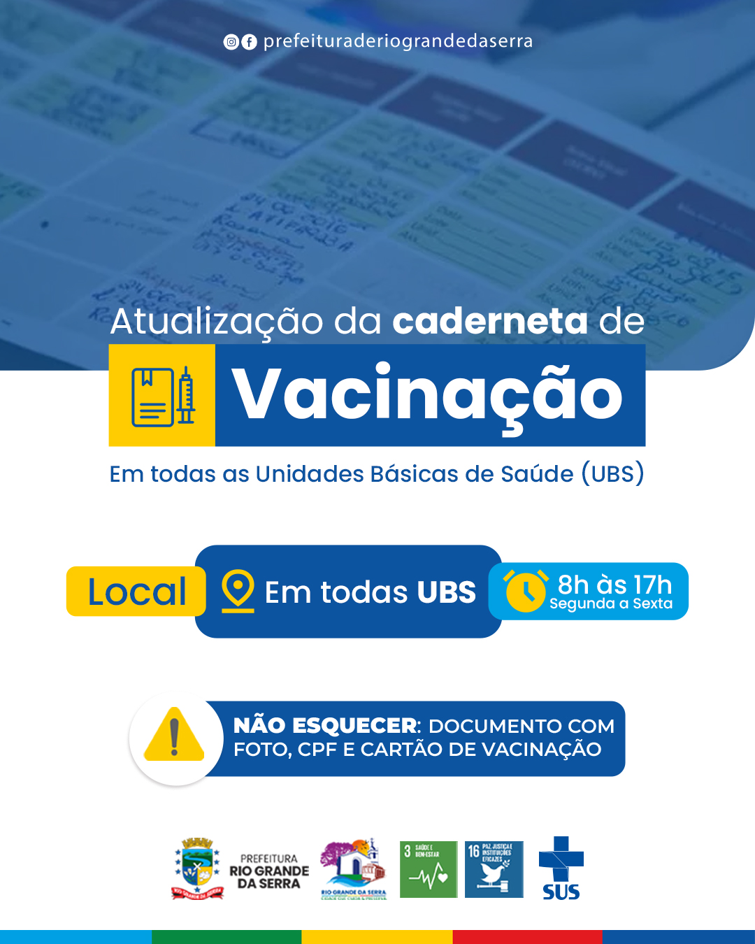 📢 Atualize sua caderneta de vacinação! A Prefeitura de Rio Grande da Serra informa que a atualização da caderneta de vacinação está disponível em todas as Unidades Básicas de Saúde […]