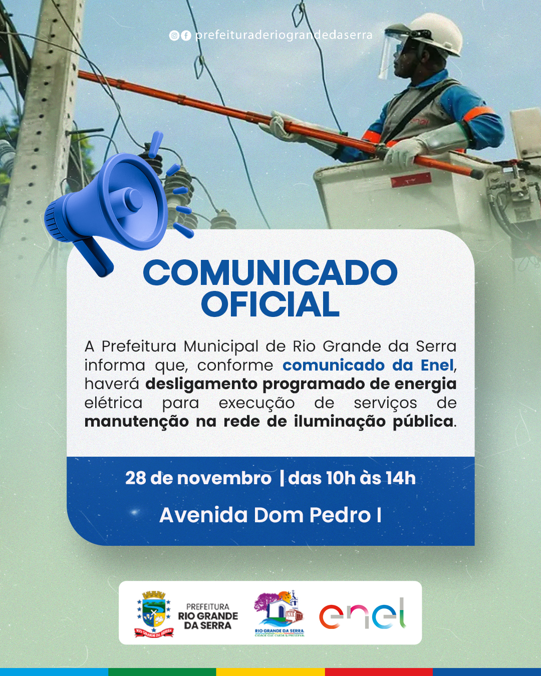 COMUNICADO IMPORTANTE A Prefeitura Municipal de Rio Grande da Serra informa que, conforme comunicado da Enel, haverá desligamento programado de energia elétrica para execução de serviços de manutenção na rede […]