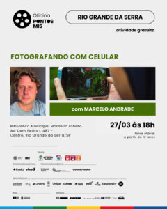📸 Oficina gratuita: Fotografando com Celular Quer aprender a tirar fotos incríveis usando apenas o seu celular? Venha participar da atividade com Marcelo Andrade, no dia 27 de março às 18h, na Biblioteca Municipal Monteiro Lobato em Rio Grande da Serra. Aberto para maiores de 12 anos, o encontro faz parte das ações do Pontos MIS e promete dicas práticas para transformar seus cliques em verdadeiras obras de arte. 👉 Entrada gratuita! Não perca essa oportunidade