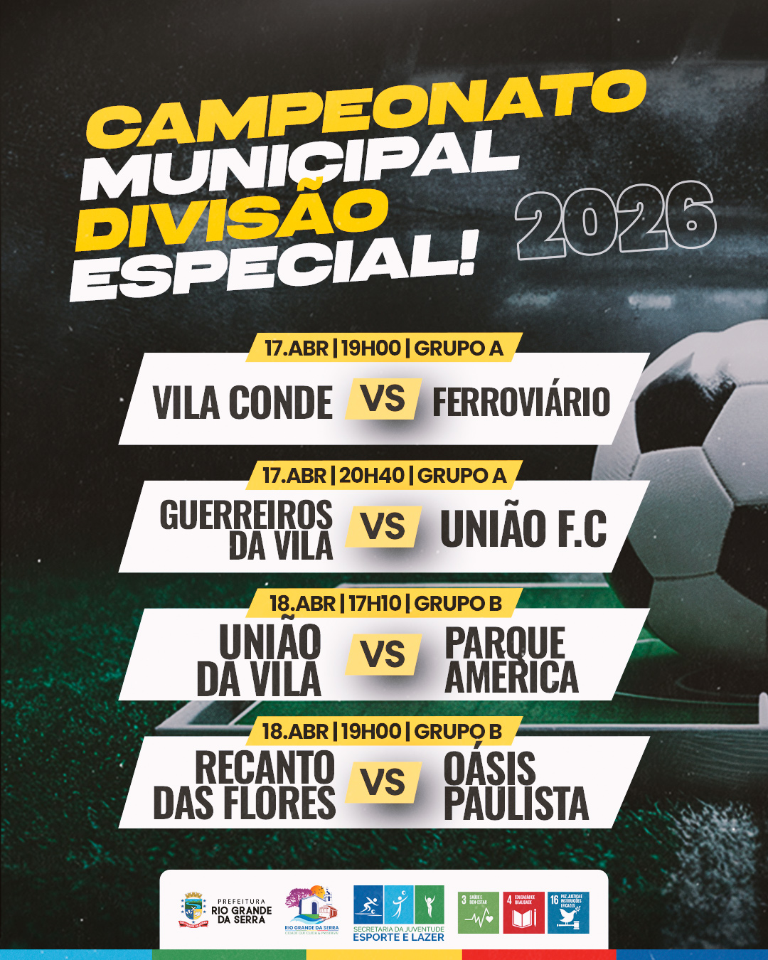 Campeonato Municipal Divisão Especial ⚽🔥 O Campeonato Municipal Divisão Especial 2026 já começou! 📅 17 e 18 de abril 📍 Estádio Teixeirão 👉 Confrontos eletrizantes entre os times dos Grupos […]