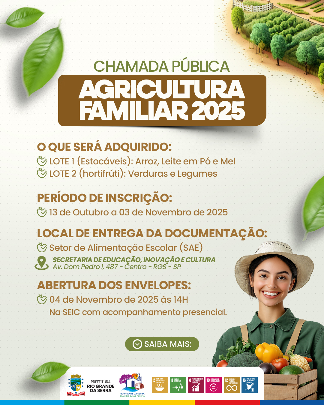 🌱 CHAMADA PÚBLICA AGRICULTURA FAMILIAR 2025 – RIO GRANDE DA SERRA 🌱