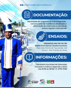 📍 Ensaios aos sábados, das 9h às 11h, na EMEB Prof. Rachel Silveira Monteiro.